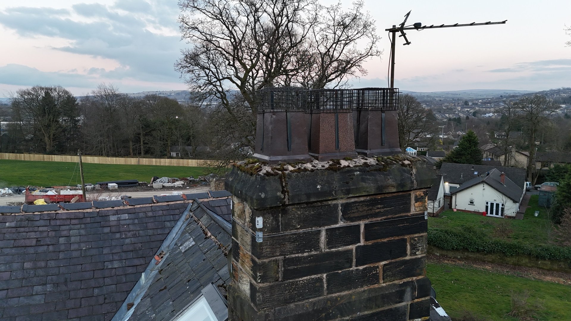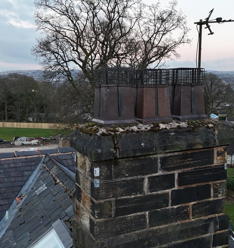 Chimney stacks are one of the most difficult parts of any property to inspect safely — and one of the most commonly neglected. Damaged flaunching, crumbling pointing, cracked pots and deteriorating mortar can all lead to serious water ingress and structural issues if left unchecked.